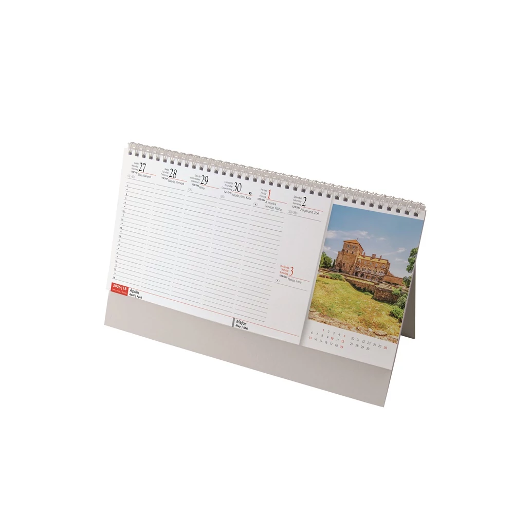 Asztali naptár 320mmx155mm, Magyarország fehérlapok álló tartóval Realsystem 2026.