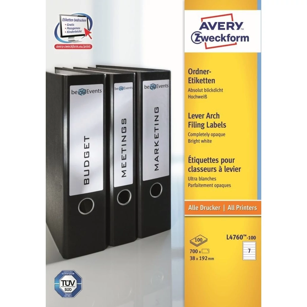 Címke mérete: 192 x 38 mm Doboz tartalma: 700 darab címke - 100 ív/doboz (7 címke/lap) Megbízhatóan tapadnak minden hagyományos, keskeny iratrendezőn. A teljesen átlátszatlan iratrendező címkék elfedik a régi feliratokat, címkéket. Biztos lehet az elakadásmentes nyomtatásban, hiszen ragasztómaradvány nem kerül a nyomtatóba. A problémamentes nyomtatás a lézernyomtatók esetén a TÜV SÜD által bevizsgált és tanúsított. Környezetbarát, FSC® minősített és klórmentes eljárással fehérített. Tervezze meg és nyomtassa ki címkéit gyorsan és egyszerűen - ingyenes szoftverünkért és sablonjainkért látogasson el a http://www.avery.hu/templates-software/ weboldalra vagy használja a Microsoft® Office csomagokba beépített sablonjainkat! Minden standard tintasugaras, lézer- és színes lézernyomtatóhoz.Katalóguskód: 25292