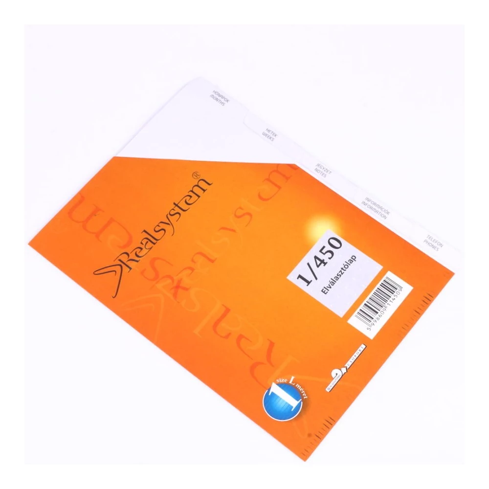Gyűrűs kalendárium utántöltő csomag 1/450 fehér papíros elválasztó lap L mérethez Realsystem
