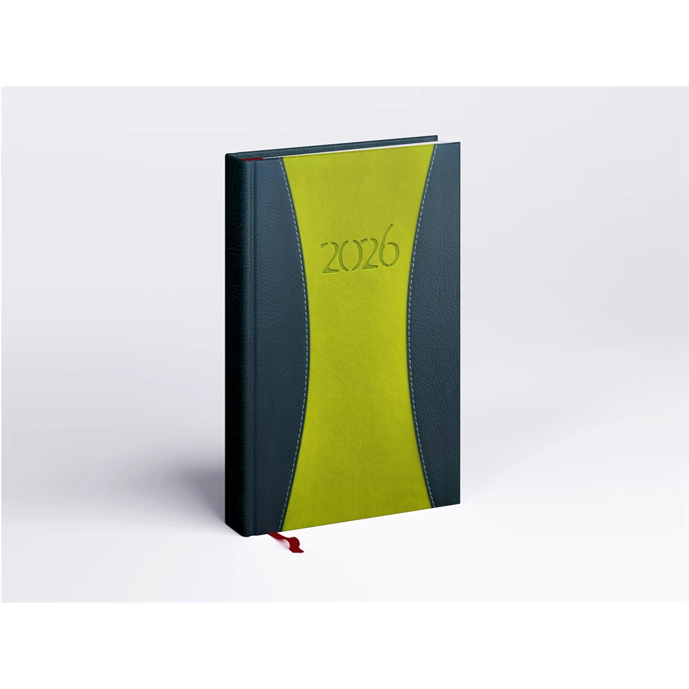 Határidőnapló Prémium A A/5, napi krémszínű lapokkal zöld Realsystem 2026.
