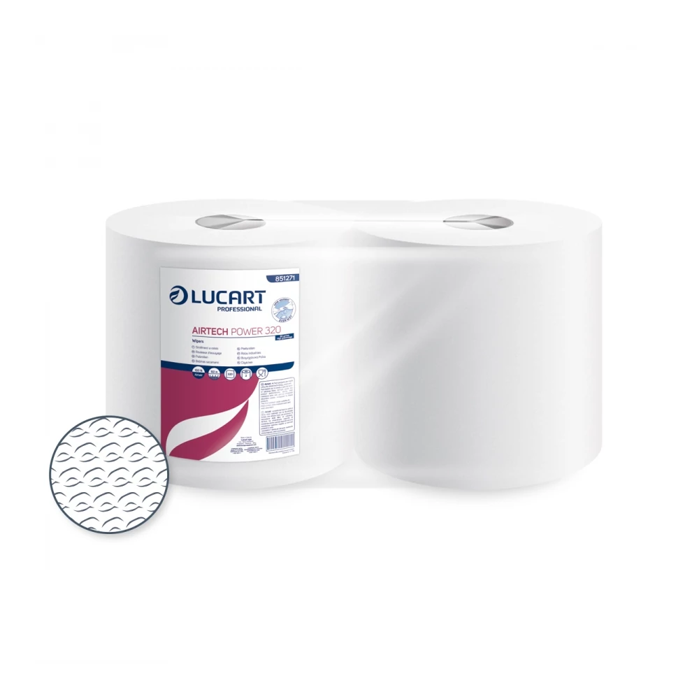 Lucart Airtech Power 320 - 80 Gsm (speciális törlőkendő) - 1 rétegű - 320 lap/tekercs - hófehér - 2 tekercs/karton - 48 karton/raklapKatalóguskód: 46350