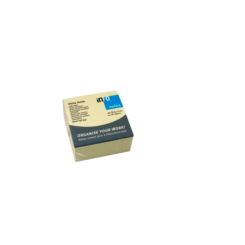 Jegyzettömb öntapadó, 75x75mm, 400lap, Info Notes sárga
