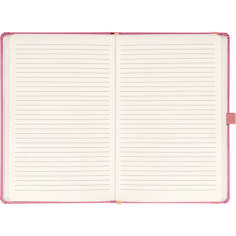 Keménytáblás notesz vonalas krémszínű lapokkal leszorító gumiszalaggal Pink 130x210mm, Presco