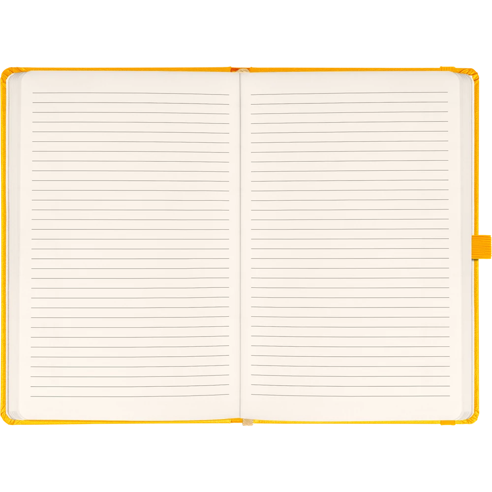 Keménytáblás notesz vonalas krémszínű lapokkal leszorító gumiszalaggal Yellow 130x210mm, Presco