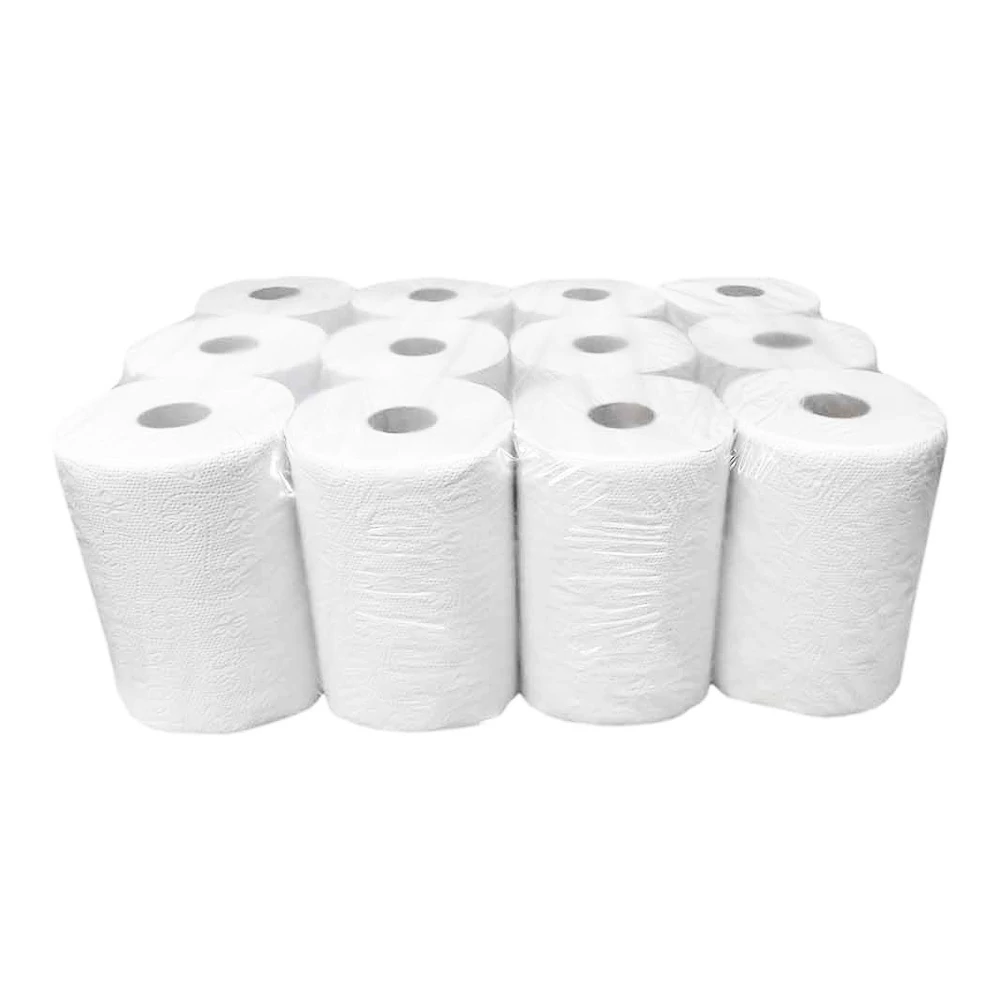 Kéztörlő 2 rétegű tekercses átmérő: 14 cm 100 % cellulóz duda nélküli 12 tekercs/karton_090631A-DN hófehér