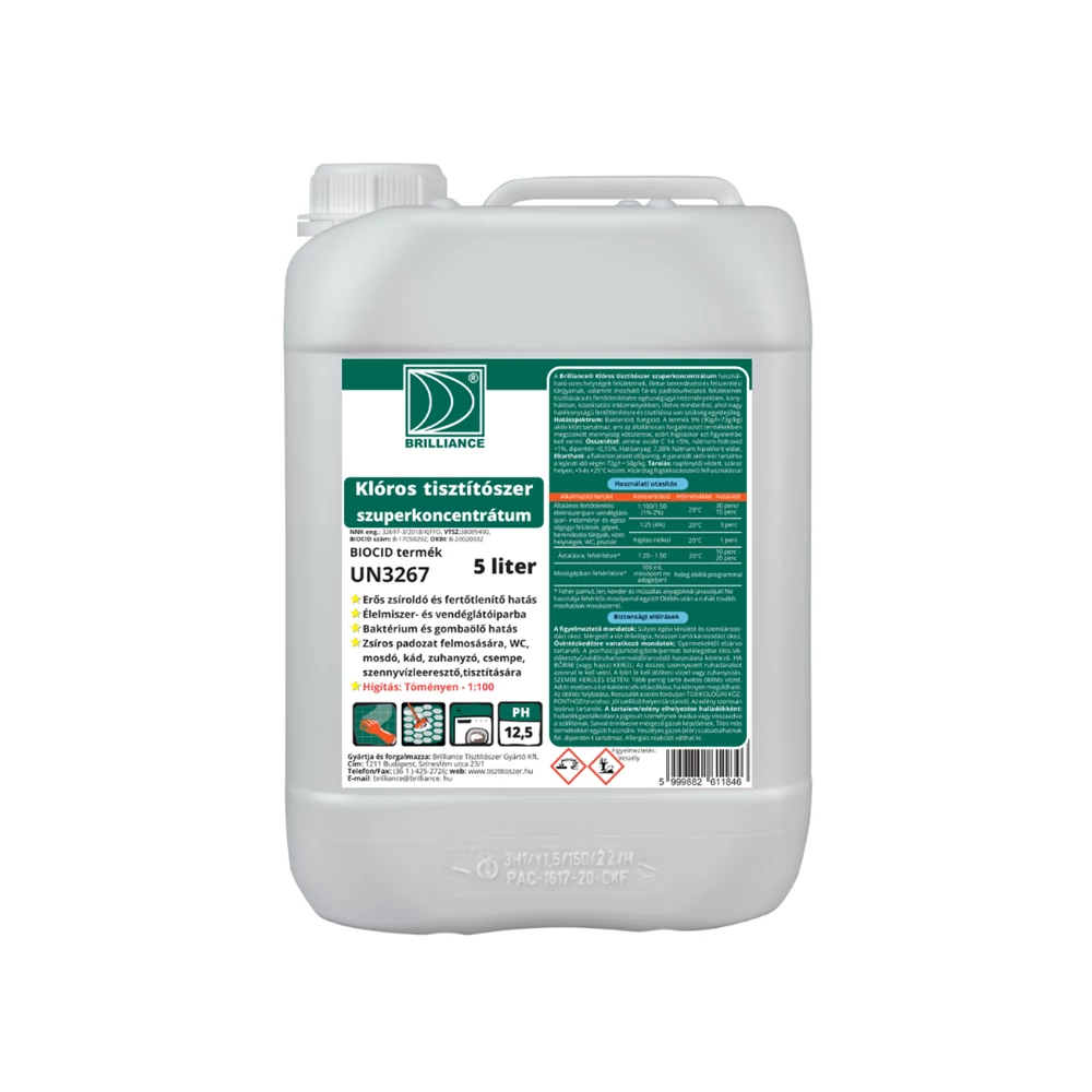 Klóros tisztítószer szuperkoncentrátum 5 l Brilliance termék alkalmazásakor ügyeljen a biztonságra! Használat előtt mindig olvassa el a címkét és a használati útmutatót!