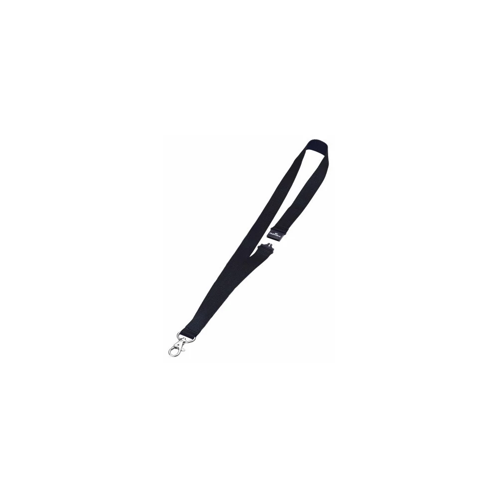 20 mm vastagságú textil szalag, melyet biztosnági zárral láttak el, ami kiold, ha a szalag beakad. Karabinerrel. Minden DURABLE névkitűzővel kombináható, amely kivágással rendelkezik. Hossz: 44 cm Katalóguskód: 24851