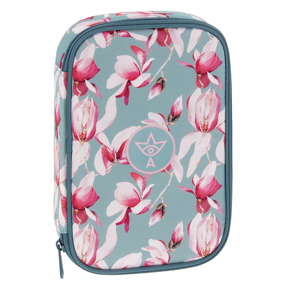 Többszintes, töltetlen, cipzáras tolltartó. Belül textillel bevont merev lapokkal, gumis kialakítással 30 ceruza számára az írószerek tárolásához és egy cipzáras belső zsebbel.