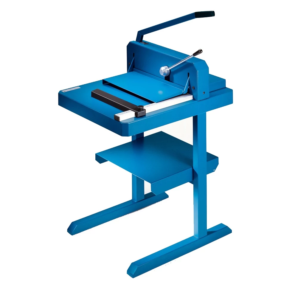 Nagyteljesítményű karos vágógép külső határolóval, mechanikus papírleszorítóval.